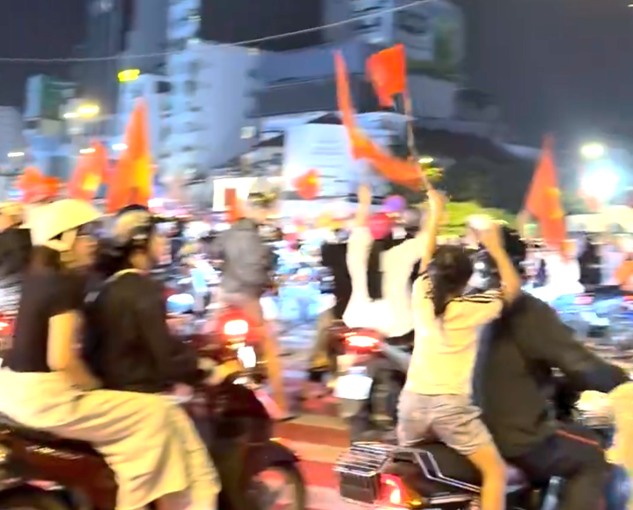 开云平台-越南民众深夜狂欢!美女球迷纯洁笑容 万人骑摩托+扛国旗涌上街头